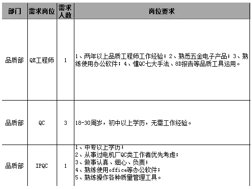 Quality Department recruitment