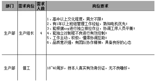 Production department recruitment